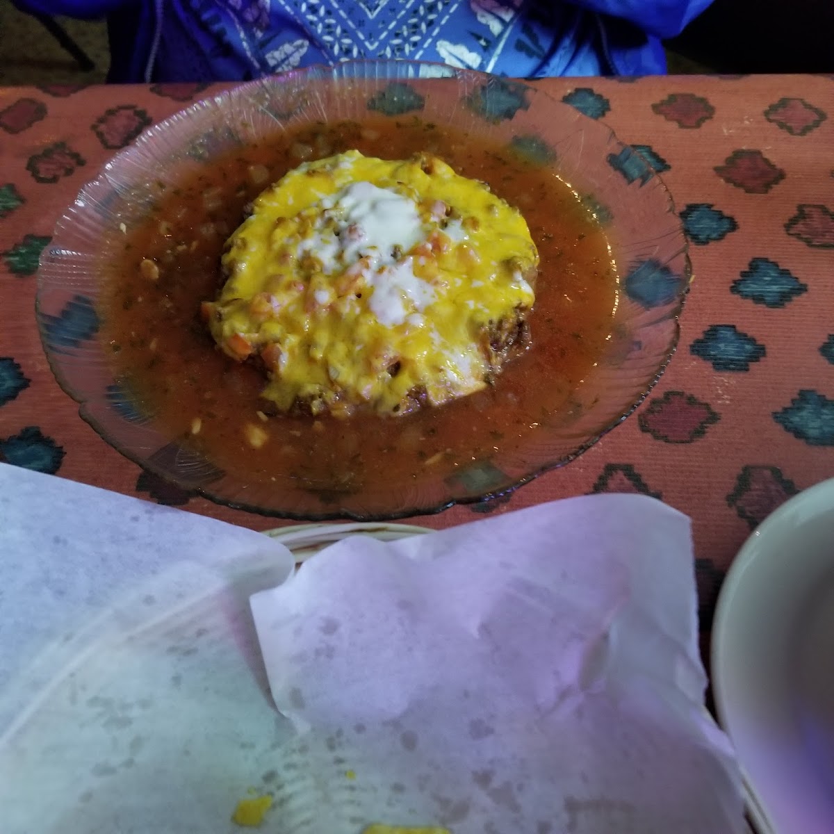 Festive / relaxing atmosphere. The Best Service!! Food was delicious. Peach Margarita was worth ordering 2 of them.Virgin Pina Colda was awesome. Definitely can't wait to go back. Cheese dip - yummy. Chicken quesadillas were delicious. Warm Chips & Fresh Salsa were complimentary. So much to choose from on the menu.
